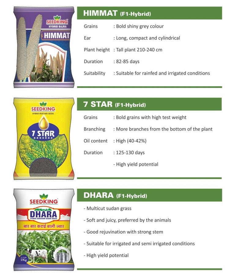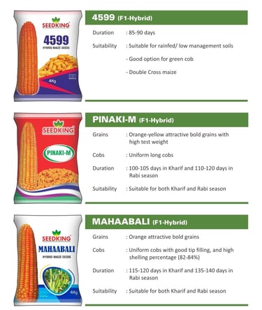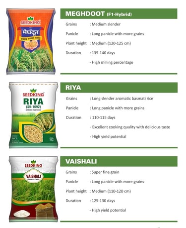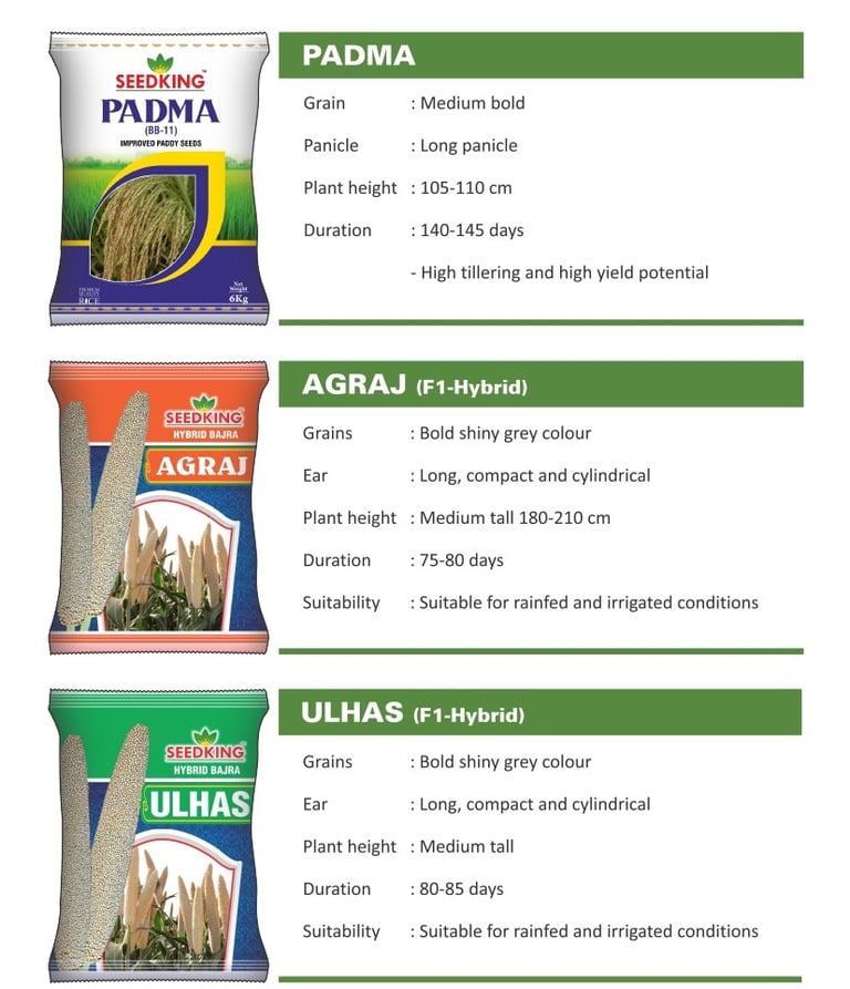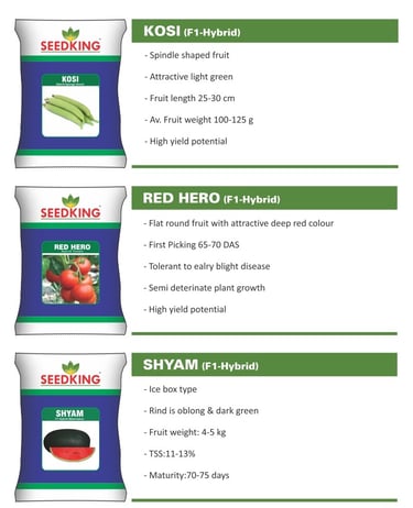 Seedking India Pvt Ltd (SIPL) was established in 2016, having its registered office at Hyderabad. The company operates mainly in northern states of India. It deals in hybrid and open pollinated seed products of maize, paddy, pearl millet, SSG, mustard and vegetable crops. The Company's R&D Unit is recognized by Department of Scientific and Industrial Research (DSIR), New Delhi.